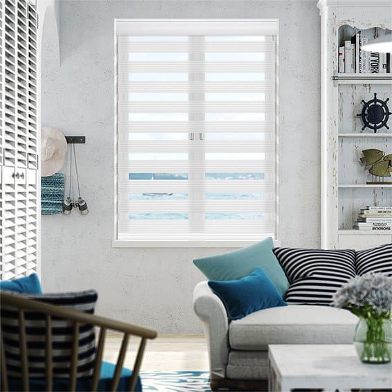 Crisp, clean lines describe every part of this stylish and practical zebra roller blind, with a minimalist grey pinstripe on white fabric and of course the innovative, dual-purpose construction.Enjoy